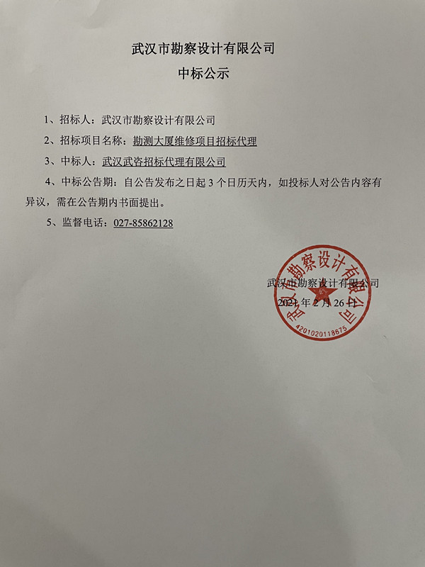 中國·光谷 智慧交通基礎設施高新三路(三環線—外環線)改造提升工程鉆探勞務分包服務項目中標公告
