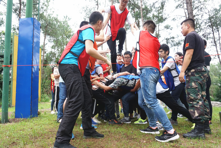 簡單的軍訓結束后,拓展活動隨即拉開帷幕,教練向大家詳細講解了本次拓展活動的要求和具體規則,以輕松有趣的熱身方式對隊員進行了分組,分別制定了隊名及口號,并進行了團隊建設、團隊融合和團隊展示。在5名教練的指導下,隊員們攻堅克難,不斷挑戰自我、突破自我,先后完成了“風雨戰士”、“信任背摔”、“穿越電網”等團隊游戲。活動中,各隊隊員全心投入,充分調動自己的靈感和創造性,積極獻言獻策,協作完成了項目設置的層層挑戰,掌聲、笑聲和歡呼聲此起彼伏。當晚,一場精彩的篝火晚會在月夜下拉開帷幕,隊員們手拉手圍著篝火,隨音樂起舞。來自各部門的“文藝骨干”即興表演,引得掌聲不斷,歡呼不歇。